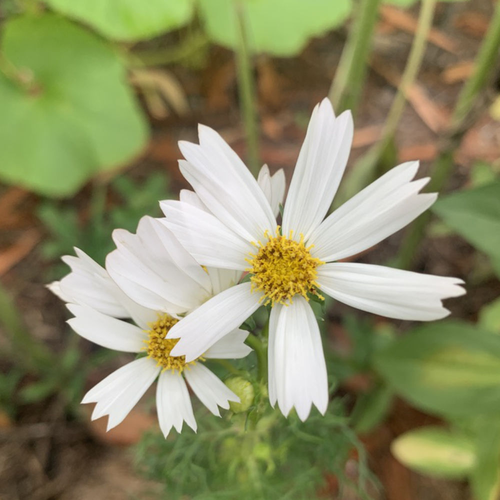 Cosmos Sensation Purity White is an annual border and cut flower plant, growing up to 110 cm tall.